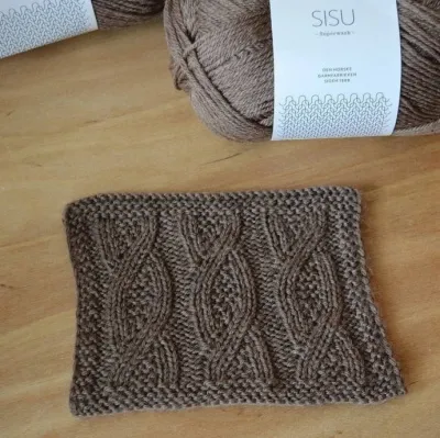 6 ряд: 2 изнаночные петли, 2 лицевые, 2 изнаночные, 2 лицевые, 1 скрещ. изнаночная, 1 изнаночная.