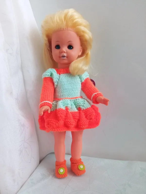 А вот и наряд. Платье связано из 100% акрила, спицы №2,5