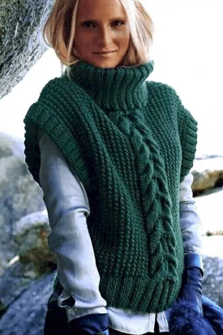 Тёплая безрукавка с объемным воротником