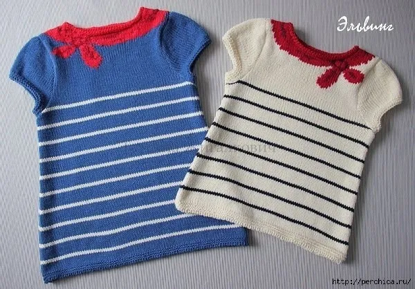 Матроска дополнена косынкой, вывязанной интарсией на горловине. Автор: Эльвинг с Осинки.