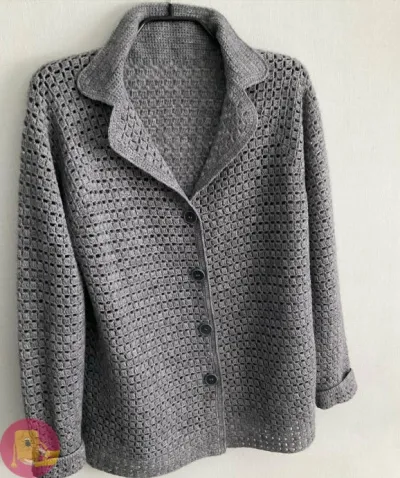 если хотите, чтобы жакет выглядел дороже — выбирайте пряжу с хорошей круткой и держите плотность вязания чуть выше обычного. Так полотно будет выглядеть более аккуратно и «собранно».