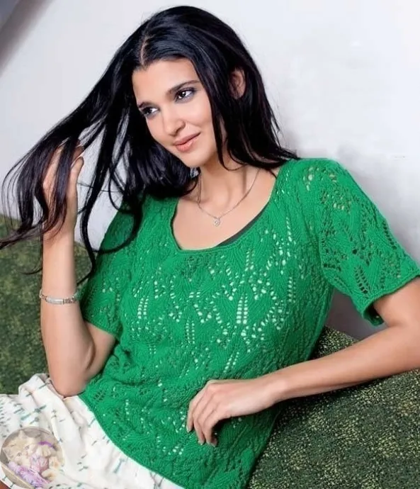 Кофточкa c aжуpными тpилиcтникaми спицами