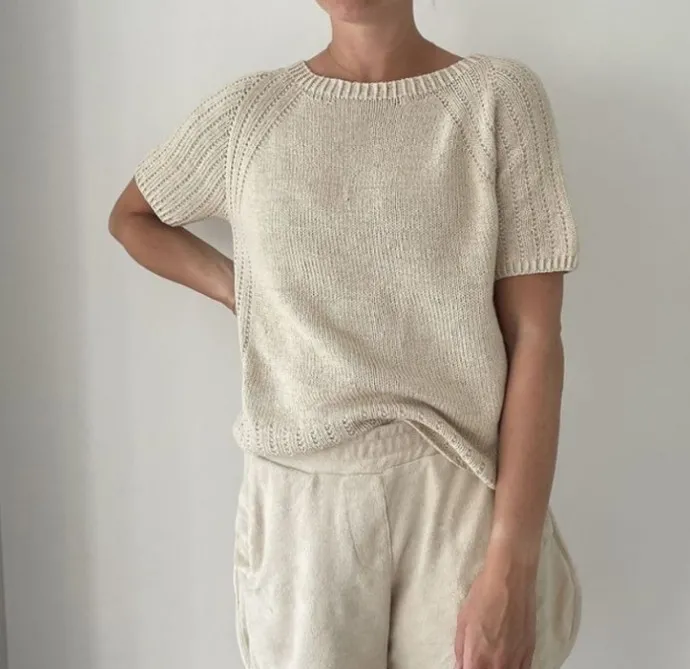 Свитер на фото связан из мериноса Sunday цвета №1015 и мохера цвета Marzipan.
