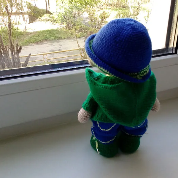 Малыш Кои 20 см ростом. Может самостоятельно стоять и сидеть, сидя 13 см. Ручки гибкие, без каркаса. Вся одежда полностью снимается. Комплект одежды состоит из: шляпки, кофтейки с капюшоном, брючек с кармашками, маечки на пуговках и ботиночек на шнурочках.