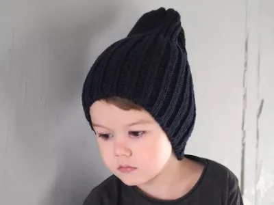 Связать такую шапку совсем несложно. Для работы нужна пряжа толщиной от 150 до 280 метров на 100 гр. Тоньше пряжу брать не стоит, на ней резинка просто расплывется и обвиснет. Если взять пряжу толще 150 метров на 100 грамм, имеем шанс получить на детской голове вязаный дом.