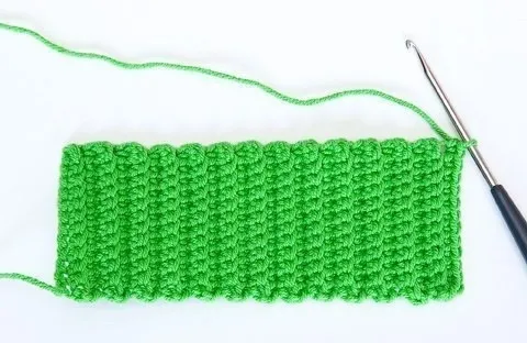 Рельефная резинка крючком — это чередование рельефных лицевых (выпуклых) и рельефных изнаночных (вогнутых) столбиков, вязание которых мы изучили в прошлом уроке (см. здесь).