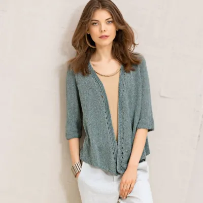 Жакет с рукавом 1/2 . Очаровательный жакет с узкими ажурными планками выглядит женственно и элегантно, несмотря на кажущуюся простоту.