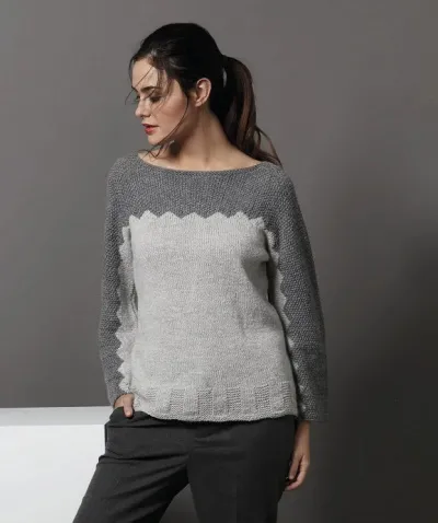 Этот джемпер связан простыми узорами, но благодаря удобному крою, пряжи из альпака и тщательно подобранным цветам выглядит он стильно и элегантно.
