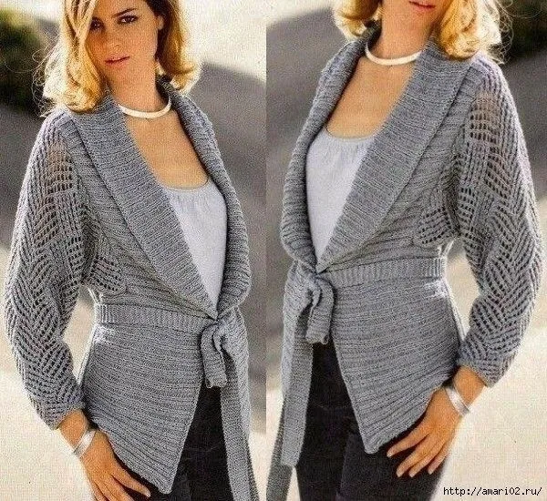 Комфортный и стильный жакет с ажурными рукавами.