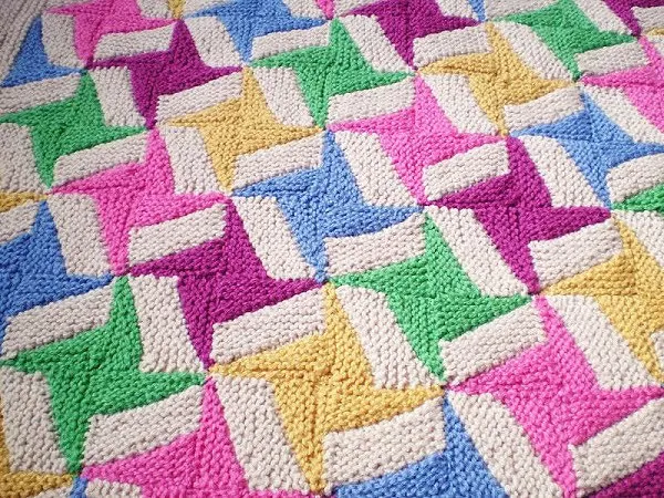 Связав необходимое количество квадратов, сложите рисунок, который вам подходит и аккуратно сшейте их между собой. После сборки, одеяло необходимо обвязать. Поднимите петли по всему периметру и свяжите несколько рядов платочной вязкой. Или выберите любой другой способ обработки края.