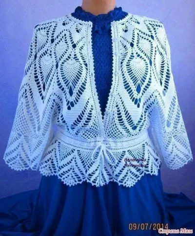 Крючок №1, Нитки 100% хлопок (100 гр. - 700 м). Жакет очень нежный, нарядный, воздушный. Подойдёт для любого возраста и любой фигуры. Можно носить с юбкой, брюками, с платьем.