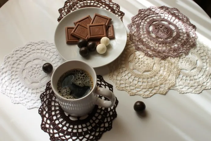 Люблю салфетки-малышки, их не скучно вязать, из них получаются прекрасные наборы подставочек, которые приятно дарить. А как они украшают стол на чаепитии.