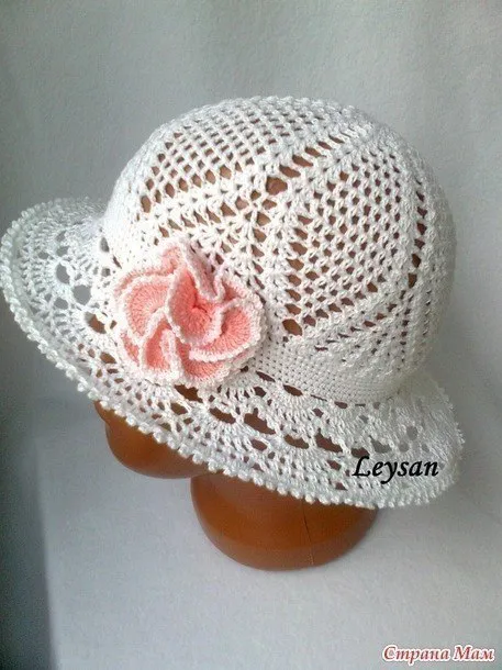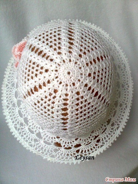 и окончательный вариант, пряжа Ажурная (Пехорка)100%хлопок,50г/280м, белая (меньше одного мотка) и чуть-чуть светло-розовой, крючок 1/0 и 0,6мм - самый первый мой опыт вязания шляпок. вязала по картинке, но с моими добавлениями. Поля - из он-лайна и как у автора по схеме нарисовала от руки (никак не разберусь как в программе рисовать) схему тюбетейки. на основе этой схемы уже можно варьировать или добавлять любые изменения (внутри лепестков например), как вариант нарисовала схемку, которую использовала в розовой шляпке.