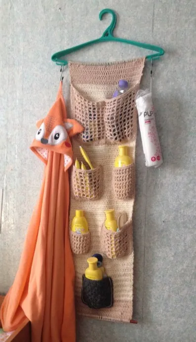Я бы такой органайзер связала не столбиками с накидом, а столбиками без накида, чтобы не очень вытягивалось изделие. И нитки вязала бы более плотные, может шнур или трикотажную пряжу.