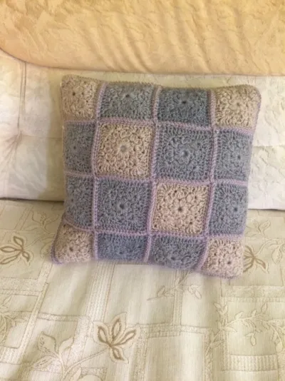 подушка размер 40 на 40 см связанная крючком из остатков пряжи