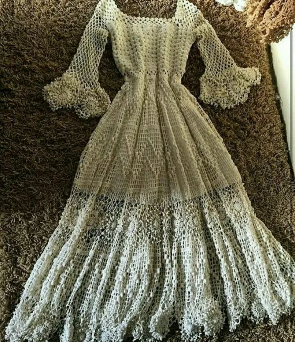 Добрый вечер! Дамы, кто может подсказать, из какой пряжи связаны это восхитительное платье? Хлопок или лен, а может, вискоза?