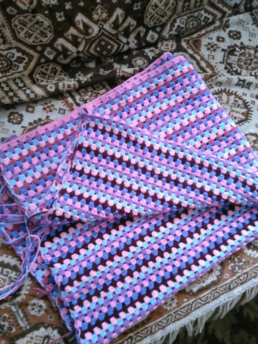 Пледик связан из ниток Ализе софти. Очень мягкий и теплый, т.к. двухсторонний.