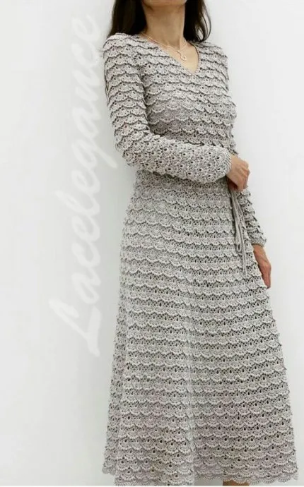 Попалось с моей точки зрения невероятно красивое платье из кружева, схема есть. Кто знает подскажите как вязать вогнутый столбик с накидом?