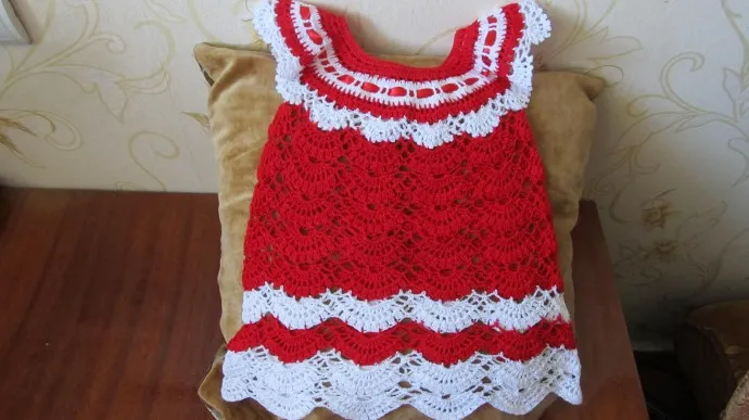 Нарядное ажурное платье ручной работы - выполнено для девочки до 3-х лет из российской пряжи. 100% мерс.хлопок с блеском.