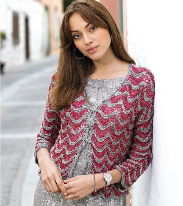 Вяжем красно-серый жакет