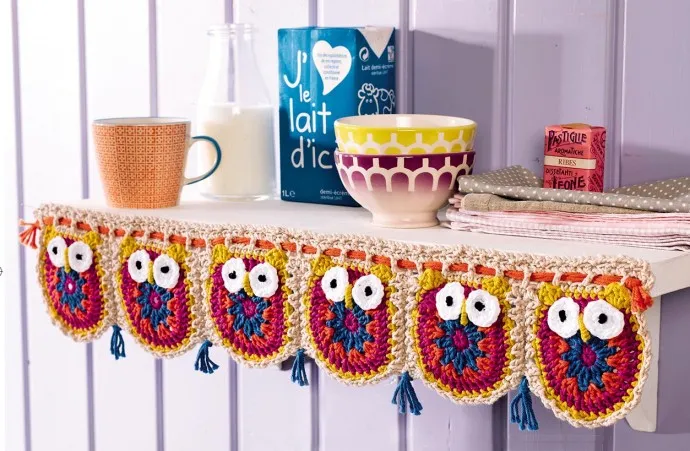 Симпатичная кайма из мотивов в виде сов украсит и кухню, и детскую. Ее можно использовать для декора полок или оконных проемов.