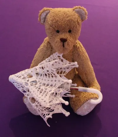 Да, такой романтичный зонтик, хорошенький! Мишке повезлоооо… Если представить на минуточку себя с таким прелестным нежным атрибутом позапрошлого века, вдруг захочется отложить все свои бесконечные дела и НЕСПЕША пройтись по набережной Днепра. Классная идея и для нас, девочек, и для кукол! Спасибо за романтику!
