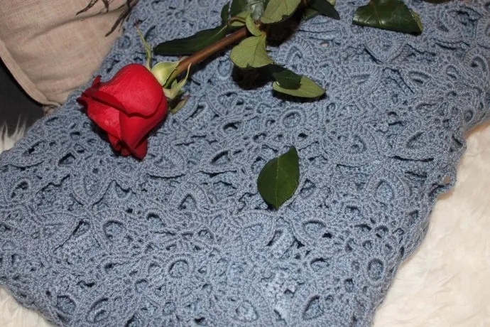 И снова красота! Браво, Галина! Очень благородный цвет пледа. Опять же представлен красиво: и в сочетании с белым, и с черным, и на фоне розы — смотрится прекрасно!