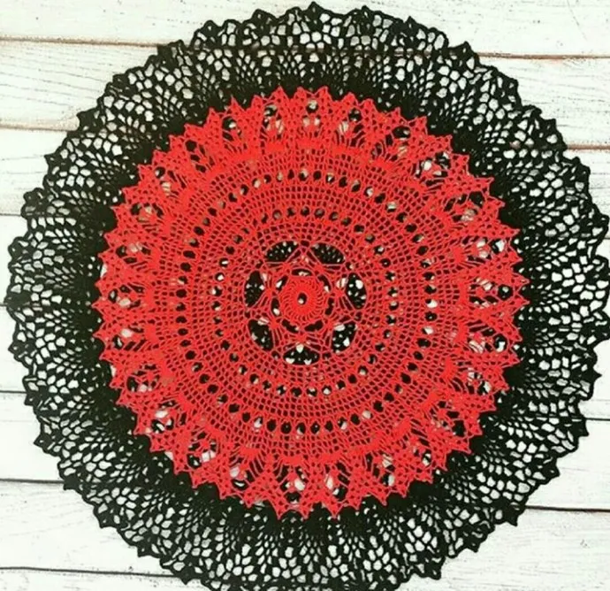 Как вам такое цветовое решение для вязаной салфеточки? Не только же белые могут быть салфетки, как думаете? Или такой выбор цвета слишком уж экставагантный.