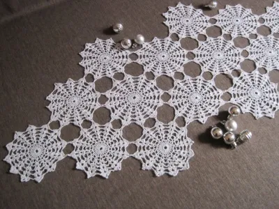 Наш комбинат им. Кирова выпускает ниточки хлопок с люрексом "Снежинка сверкающая". Они очень красиво смотрятся в работе, но к сожалению фото не передает всей красоты. Связала салфетку из мотивов и по мере вязания поняла, что из этого мотива можно связать несколько салфеток.Нитки белого цвета, а в работе получаются сероватые с блеском металлической нитки, настоящие снежинки.