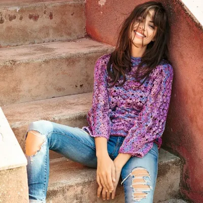 Оригинальная многоцветная пряжа и связанные крючком «ракушки» придают этому джемперу яркий беззаботный вид.