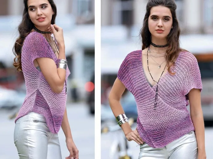 Очень простая идея, с которой справятся даже начинающие: этот топ состоит из двух одинаковых прямоугольников, соединенных крест-накрест.