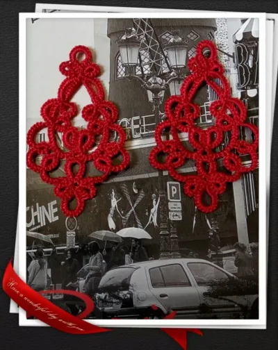 Серьги сплетены в технике фриволите.