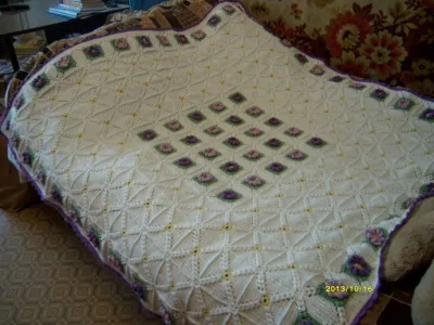 Добавляю по просьбе схемы к первому пледу, второй связан полностью по схемам 4-го фото, третий - это уже моя фантазия)))