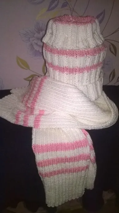 Комплект шапка под длинный хвост с широким шарфом