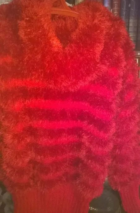 Свитер красный с большим воротником из травки