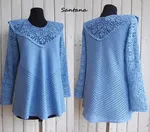 Описание дано для размера XS (S, M, L, XL, 2XL, 3XL). Окружность груди 83 (94, 102, 125, 132.5, 143) см. Размеры готового изделия указаны на выкройке. Сложность работы — высокая. Чтобы связать ту...