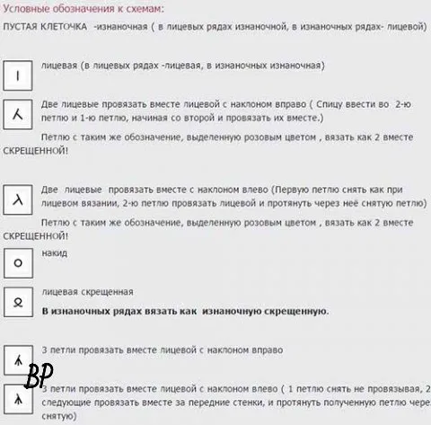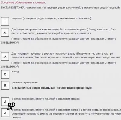 Число петель 12+11+2 кром.п.Вязать по схеме, на которой приведены только лиц.р. В изн. ряду петли вязать по рисунку, накиды провязывать изн.п.Начинаем вязать с 1-й кром.п. и петель перед раппортом, по...
