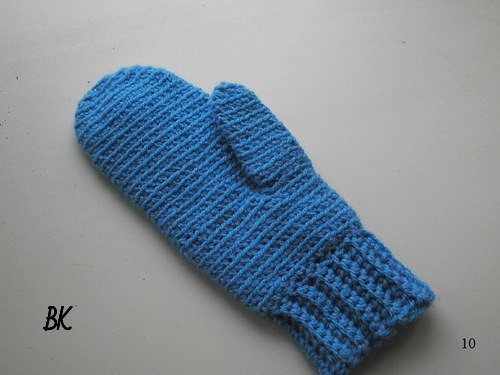 по краю резинки набираем петли по количеству, зависящему от ширины кисти. Это раза в полтора, если кисть не широкая как, например, на фото рукавички,