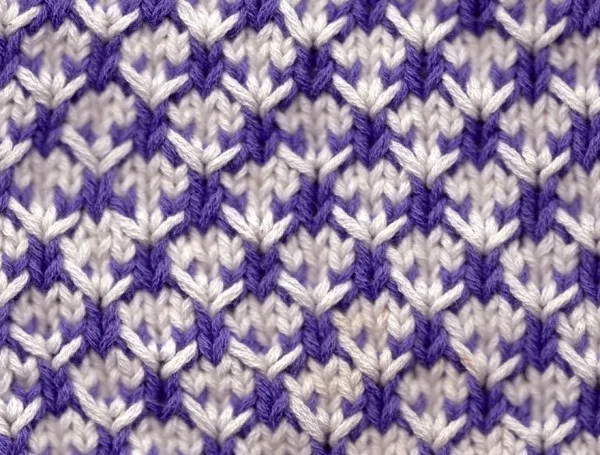 Количество петель кратно 4 +3 для симметрии +2 кромочные. Число петель увеличивается в рядах 1 и 5 и уменьшается в рядах 3 и 7.