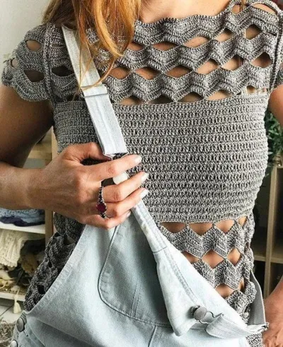 Вязаный крючком топ с оригинальной отделкой. Схема узора.