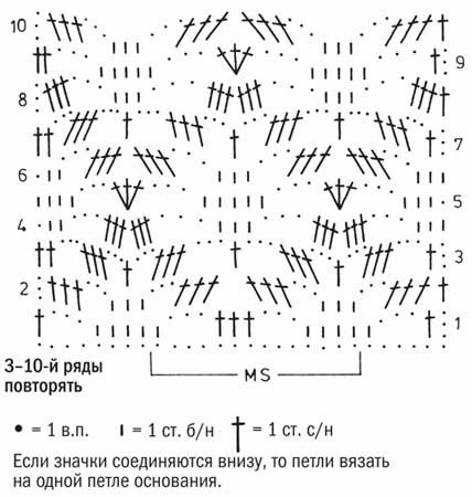 1–10-й ряды связать 1 раз, затем повторять 3–10-й ряды.