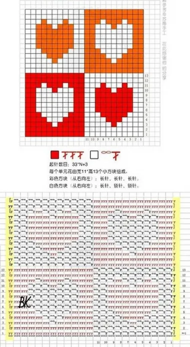 рапорт 14 петель в 11 ряду между сердцами должно получиться 3 изнаночные петли, потом они начинают увеличиваться, а сердце наоборот закрывается для образца набрала 16 петель (2 из них кромочные) 1 ряд...