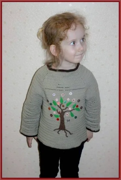 Связался еще один пуловерчик для Миланочки.Много раз в интернете попадался пуговичный декор на одежде и каждый раз думала,что надо бы попробовать,а тут в Стране мам наткнулась на он-лайн - Кофточка с пуговичным декором .Сразу же купила ниточки и вот результат...