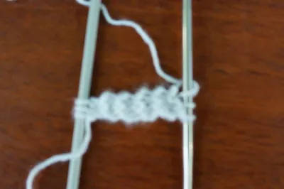 Ленточку для шали набираю на двух спицах, третьей провязываю по одной стороне 10 рядов. В одиннадцатом поднимаю по боковине 5 петель и вяжу по правилам вязания ленточки для шали. В тринадцатом из каждой центральной петли провязываю две, и этот ряд становится первым рядом первой схемы шали.