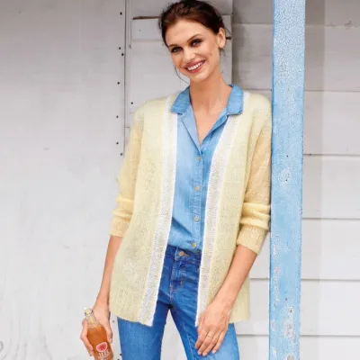 - Пpяжa 1 (77% мохеpa, 23% шелкa; 175 м/25 г) — 125 (150) 175 (200) г желтой;