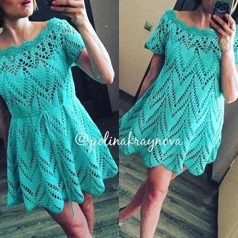 Довязываем нужное количество раппортов до необходимой длины платья.