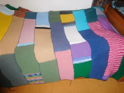 М-да… Труда вложено много в покрывало, а красоты в нем никакой нет. Неаккуратно и цвета не подобраны. Я бы постыдилась выкладывать такое на всеобщее обозрение. В интернете масса вариантов пледов и можно выбрать более красивое изделие для вязания.