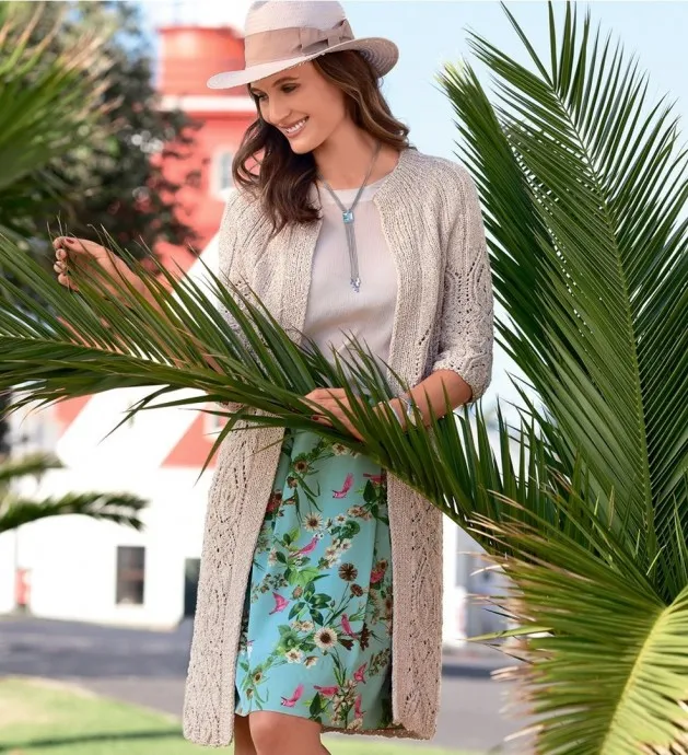 Женственное шикарное пальто без застежек с красивым ажурным узором — прекрасный выбор для теплых летних дней.