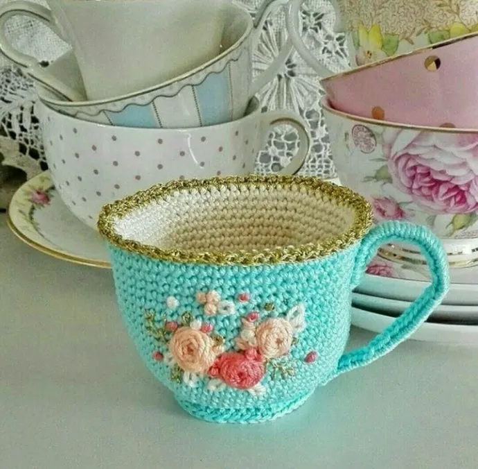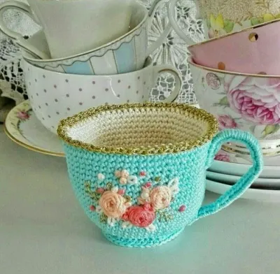 Замечательная чашечка. Цветочки конечно очень дополняют общее впечатление. Хотела бы и я начинающая рукодельница узнать как связать такую прелесть. Поделитесь пожалуйста. Галина.