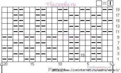 Усл. обозначения : пустая клетка - лицевая петля, горизонтальный штрих - изнаночная петля. Очень красивый узор, состоящий только из лицевых и изнаночных петель. Сочетание трёх разных фактур создаёт ...